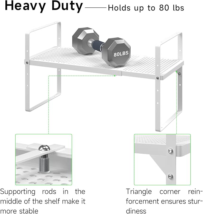 Expandable Cabinet Storage Shelf Stackable Organizer Rack for Kitchen Bathroom Pantry Spice Cupboard Coffee Countertop Home Office Desk Heavy Duty Nonslip White Small 2 Packs