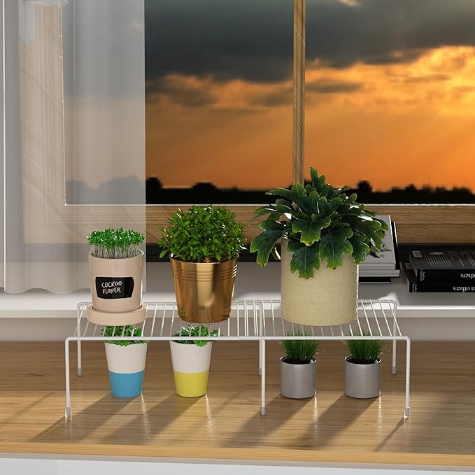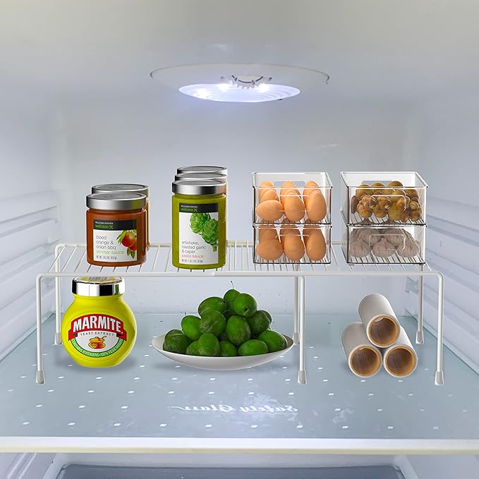 Redrubbit Cabinet Storage Shelf Rack, Expandable Metal Rustproof Kitchen Counter and Cabinet Shelf, Storage Rack Organizer Space Saver for Kitchen, Fridge, Cabinet, Bathroom, White, Set of 6