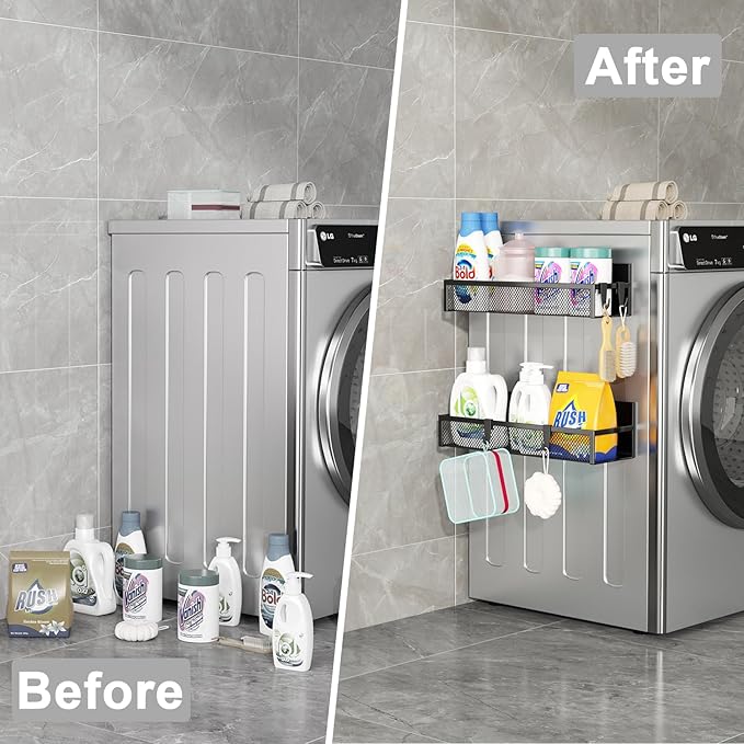 - Multi-Use Magnetic Refrigerator Organizer: Can be used on all magnetic surfaces of your home, kitchen or laundry room, such as the side wall of your refrigerator to hold spices, oils, utensils, towels or other essentials. Our moveable refrigerator shelf can also be used on the side of an oven, microwave, coffee machine, washing machine, classroom, whiteboard or tools wall for storage.
