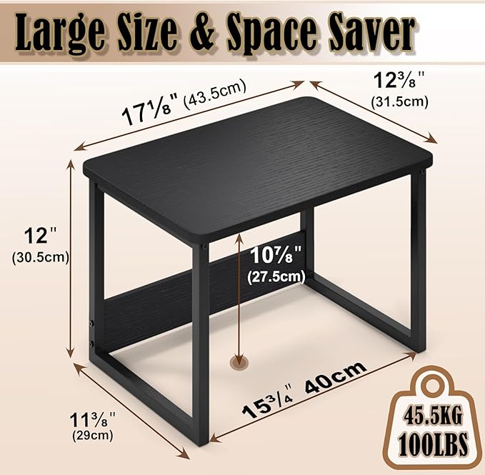 MARTY Kitchen Countertop Organizer Cabinet Shelf, 17x12.4 Large Spice Racks Counter Shelf Microwave Oven Rack Desktop Storage Organization for Kitchen, Office, Metal & Wood, Black