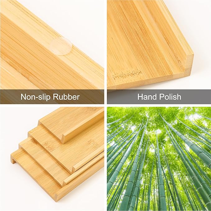- Large-Capacity 4 Tire Spice Rack: Measures 16.14"×15.77"×2.75"(with jars), KitHero spice drawer organizer is applicable to most drawers, and the inclined board design makes it quick and easy to read the labels and grab jars.The hand-polished high quality construction 5 mm trays are sturdy and smooth, easy wipe to clean.Note:please measure your drawer!